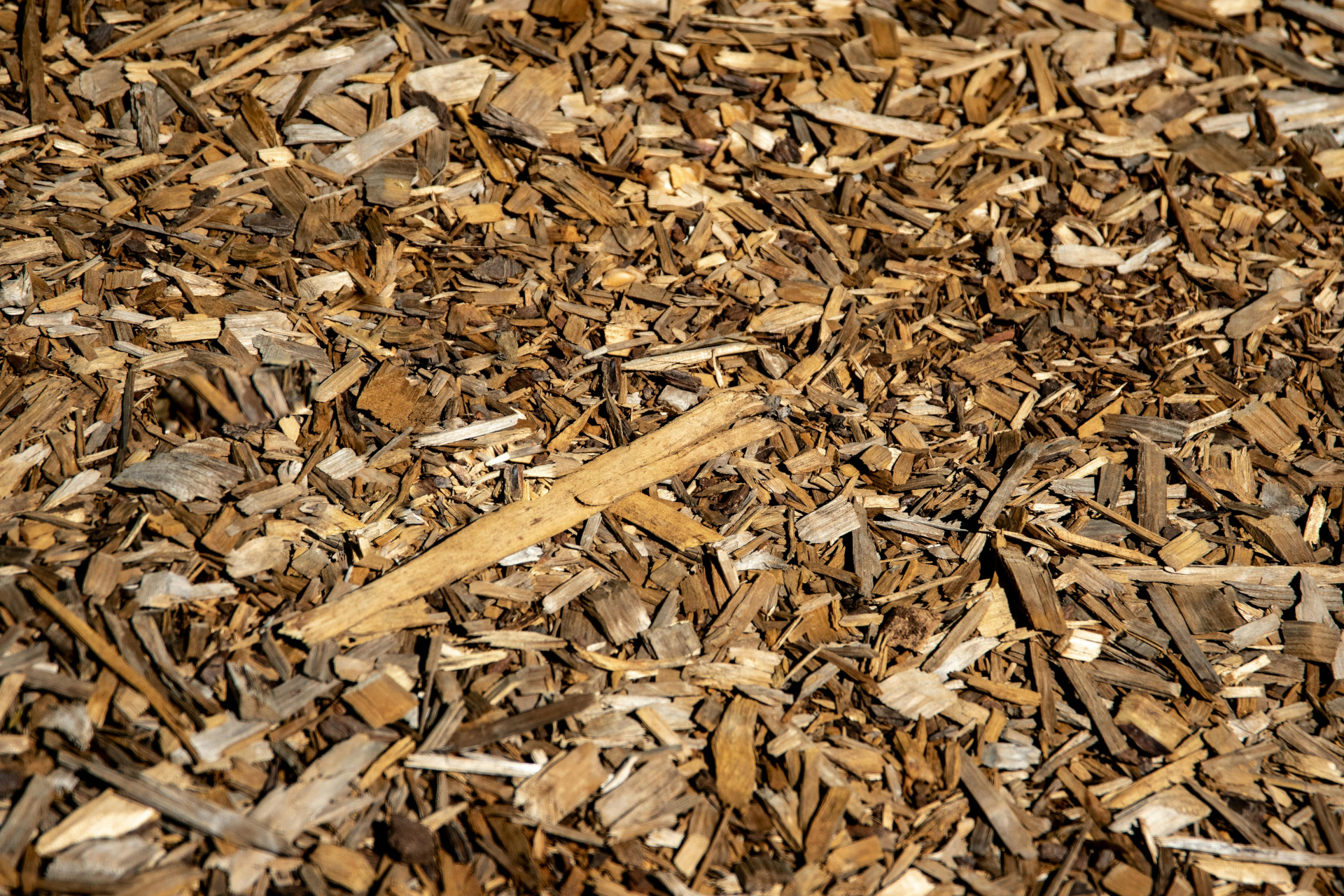 Description: Larger-chunk wood chips from tree prunings/forestry; similar to bark but larger pieces.