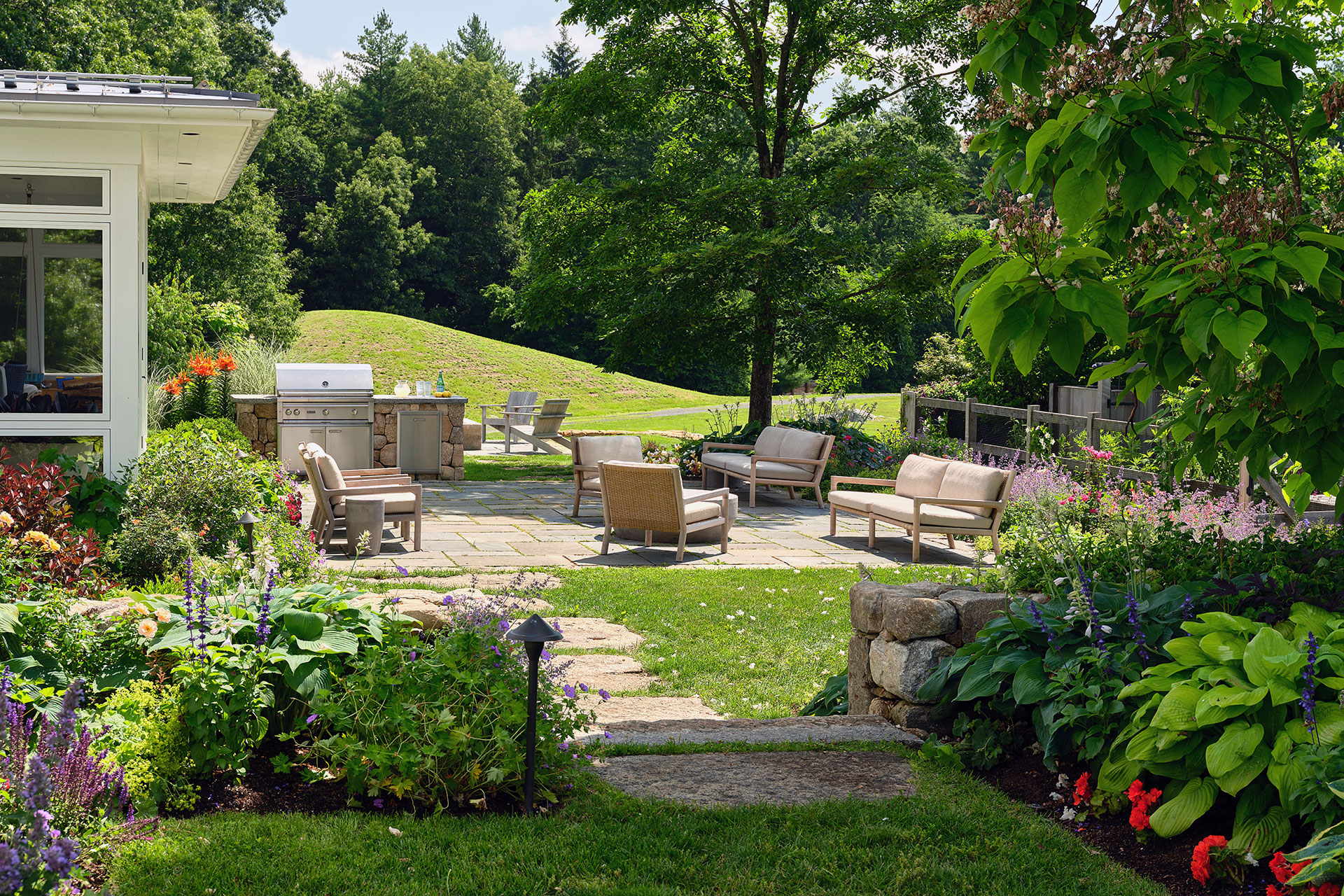 Every decision needed to respect the Carlisle site’s past while ensuring long-term function and sustainability. Our team approached the project as a multi-year evolution, developing a cohesive vision that balanced environmental responsibility, mature plantings, and a strong connection between the home and the land.