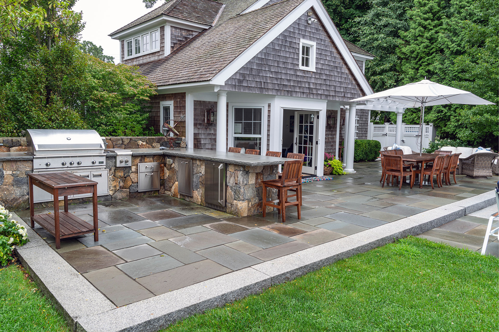 If you’re considering how an outdoor kitchen or dining area could fit into your property, contact us today,. We'd be thrilled to share more examples of our work and discuss how a Blade of Grass can help design, build, and maintain a space that feels natural to your home and property.