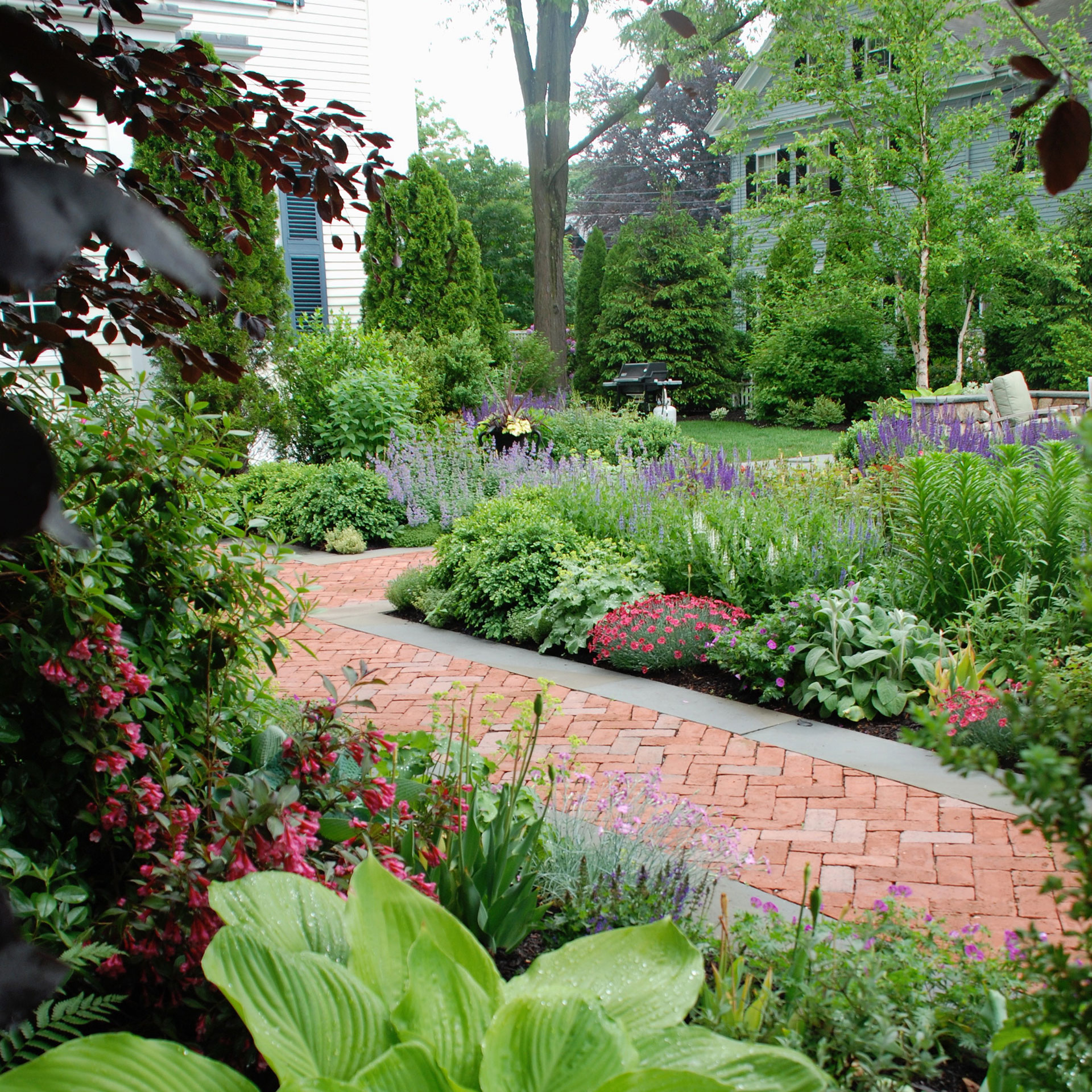 Yes. Brick, bluestone, and granite complement many New England architectural styles, from Colonials to shingle-style homes. Material choice should align with both the house and surrounding landscape.