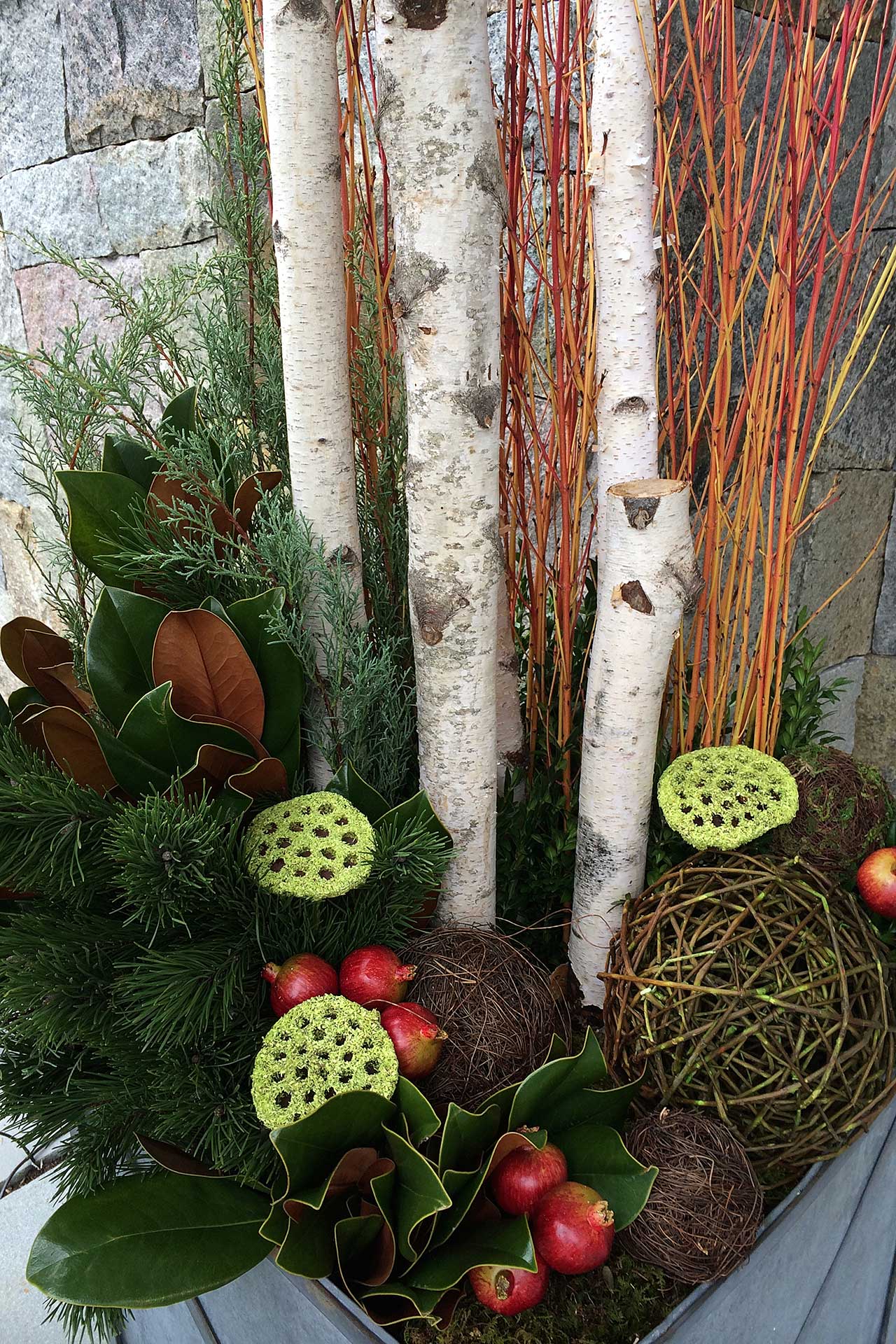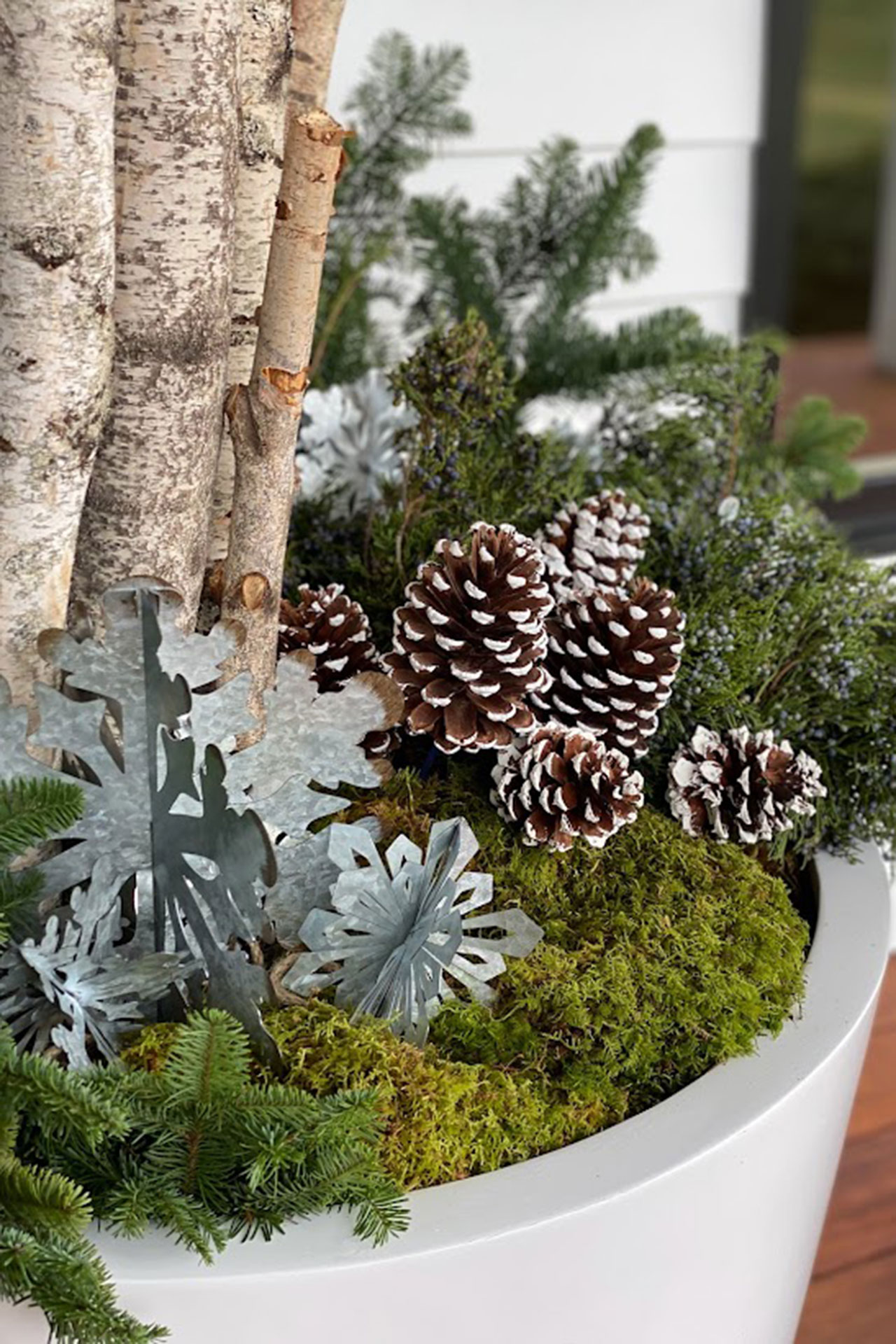 Many containers can remain outdoors year-round if they are built for cold climates and planted appropriately. Winter arrangements using evergreens, branches, and decorative accents help maintain visual interest during colder months.