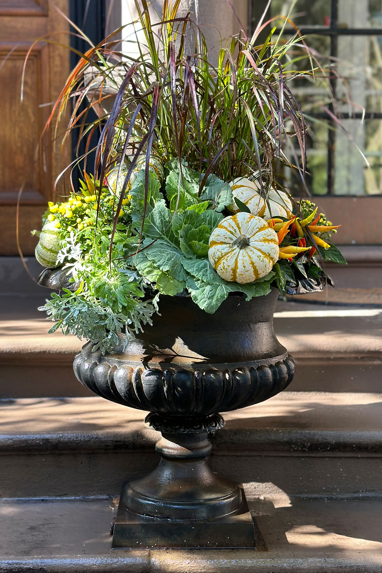 Most homeowners refresh planters two to three times per year. Spring and summer plantings focus on color and growth, while fall and winter designs emphasize texture, structure, and durability.