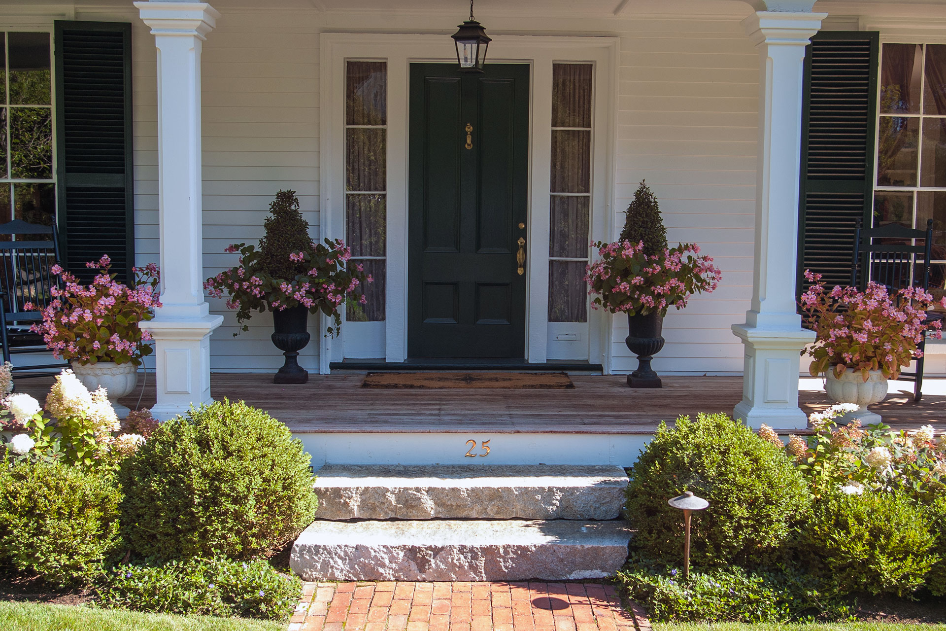 Annuals provide bold seasonal color, while perennials, ornamental grasses, and compact shrubs offer longer-term structure. Evergreens are commonly used in Boston-area landscapes to maintain curb appeal through fall and winter.