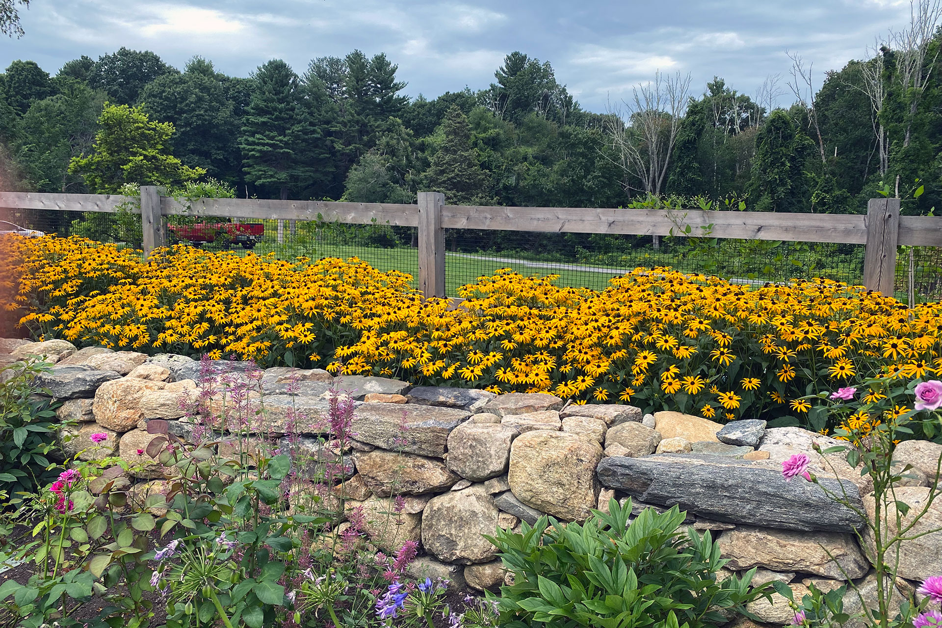 “Joanna had an encyclopedic knowledge of every plant we looked at. The installation crew led by Joel was also terrific. In fact, despite oppressive heat, they removed some old stones in the way and used them to repair and extend a fallen wall - a really thoughtful touch that went above and beyond the plan.”