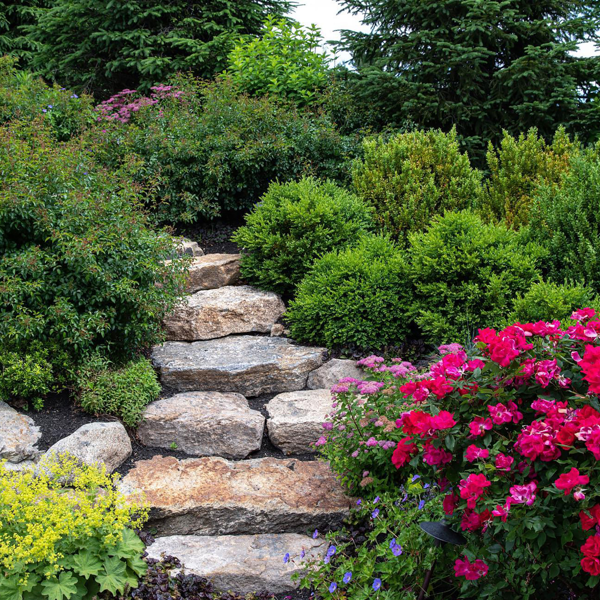 Stone walls and steps bring structure, definition, and durability to a landscape. Built from natural stone or masonry, they manage grade changes, create clear transitions, and reinforce the character of a property while blending function with craftsmanship and long-term performance.