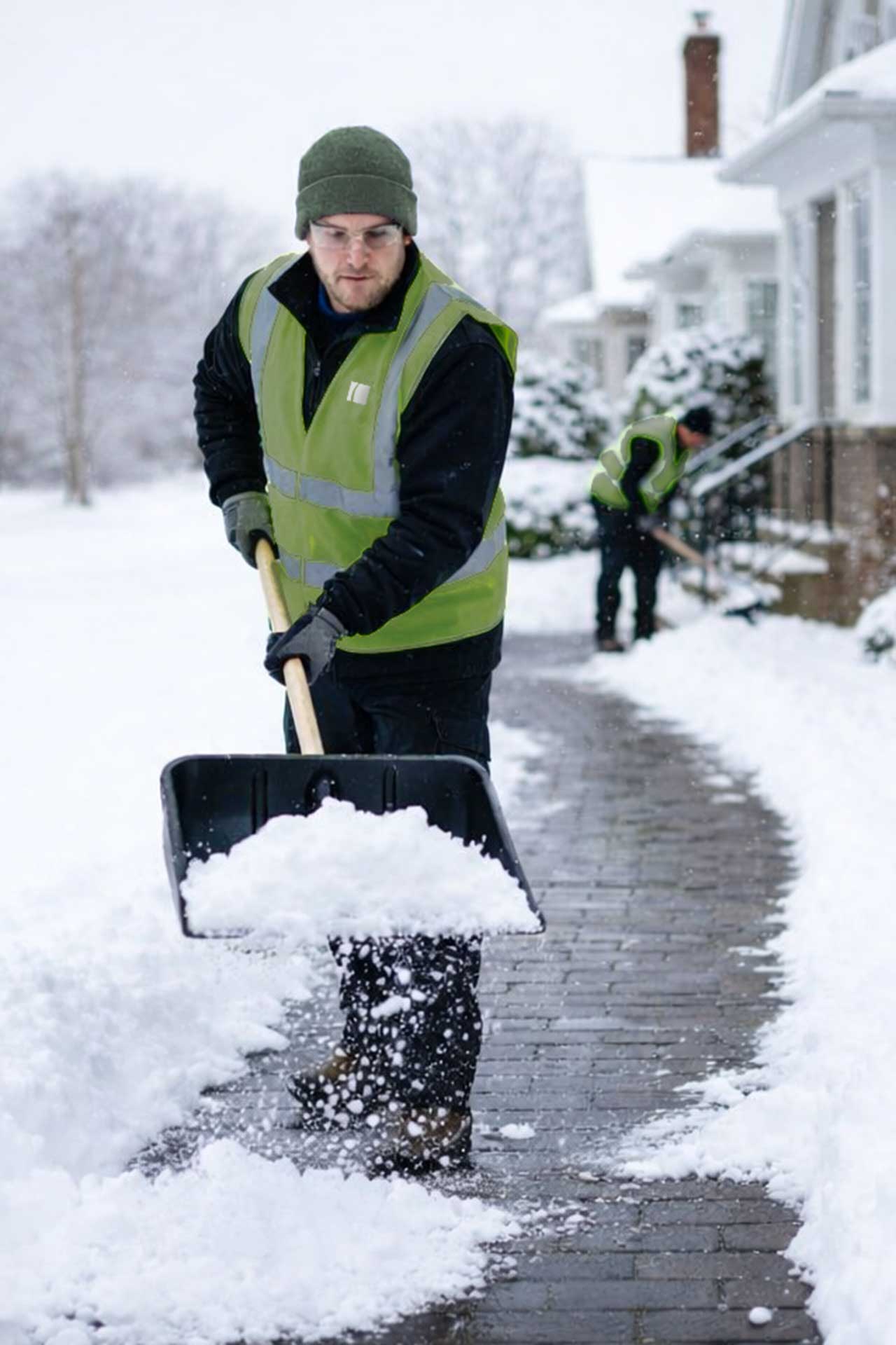 Hand clearing ensures safe footing along walkways, steps, and primary entry points.